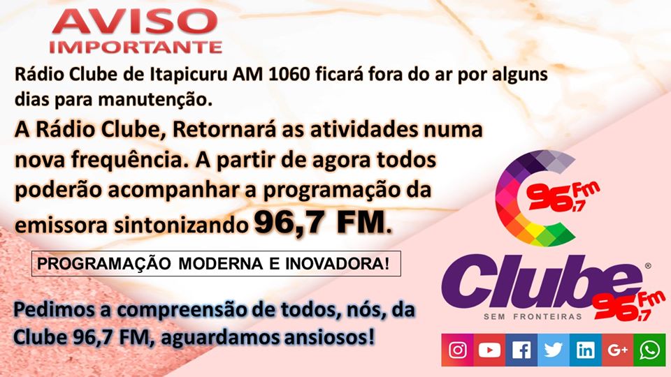 Com uma sede moderna, a nova Rádio Clube, antes sintonizada em AM 1060 pode ser sintonizada através da frequência 96,7 FM alcançando toda Região.