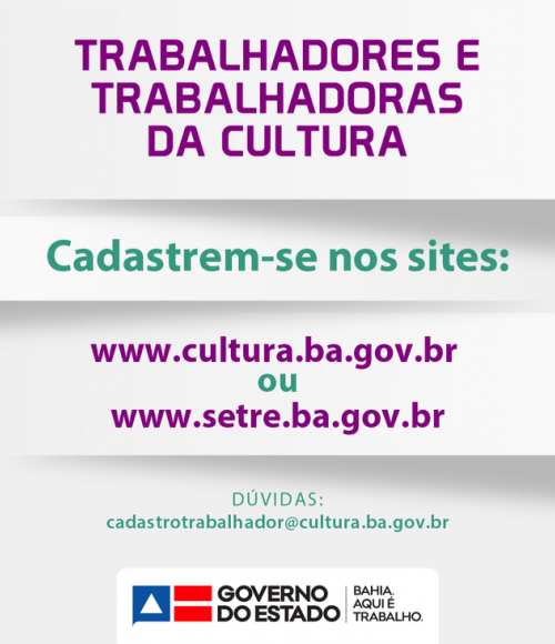 CADASTRE-SE AQUI: SecultBA e Setre realizam cadastro de trabalhadores do campo cultural na Bahia
