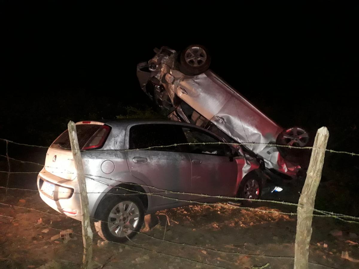 O Batalhão da Polícia Rodoviária Estadual (BPRv) foi acionado por volta das 19h30 e constatou que houve um choque transversal entre os veículos, que ocasionou a saída de pista. Um dos carros foi parar em cima do capô do outro.